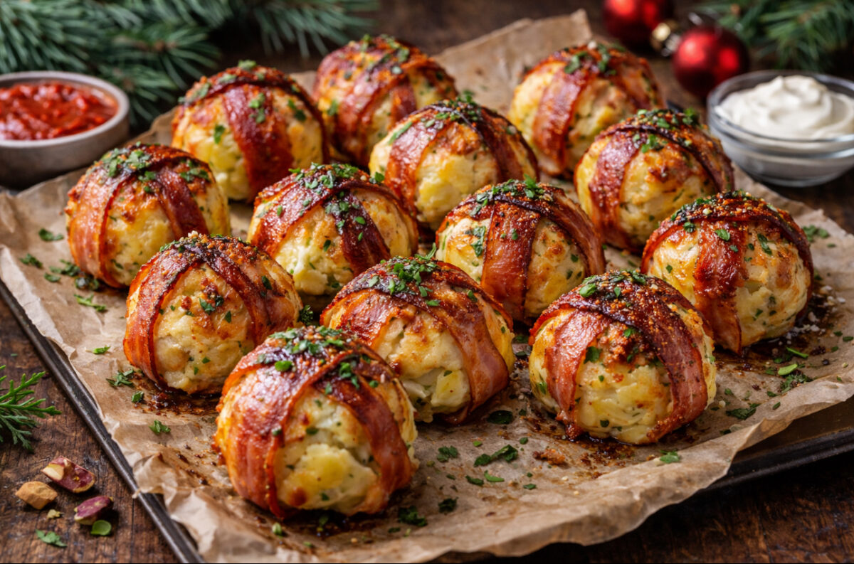 Картофельно-куриные шарики в беконе — блюдо, которое выглядит как эффектный ресторанный трюк, а готовится удивительно легко.