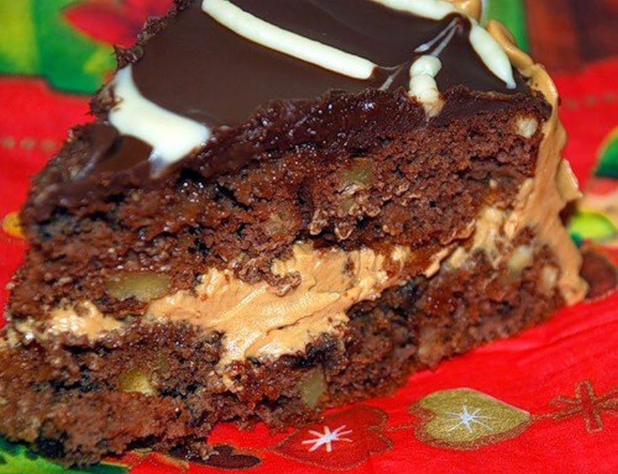 Орехи измельчить, чернослив нарезать. Взбиваем яйца с сахаром до увеличения в несколько раз, добавить коньяк, мед, взбить. Добавляем в массу орехи и чернослив. В миске перемешать муку, какао, корицу, разрыхлитель и добавить к яичной массе.