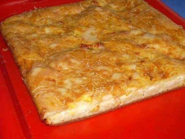 Взбить 3 яйца со сметаной, добавить растительное масло, соль, муку и соду, хорошо перемешать. Выливаем тесто в смазанную маслом форму половину теста, сверху выкладываем натёртый на крупной тёрке сыр и выливаем второй половиной теста. Выпекаем в духовке при 180С до готовности, около 40-50 минут.