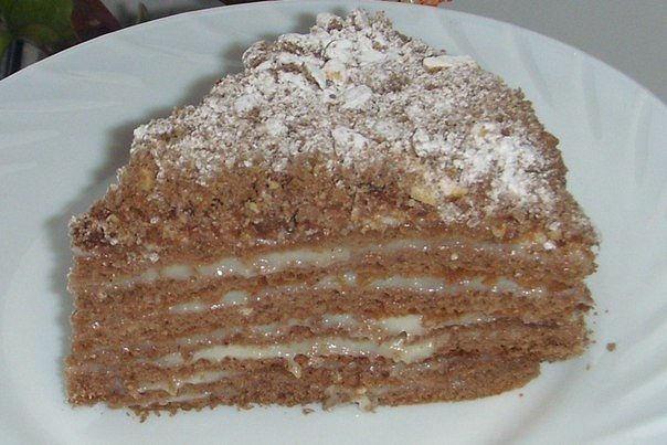 Посыпаем сверху торт крошкой и измельченными грецкими орешками.
