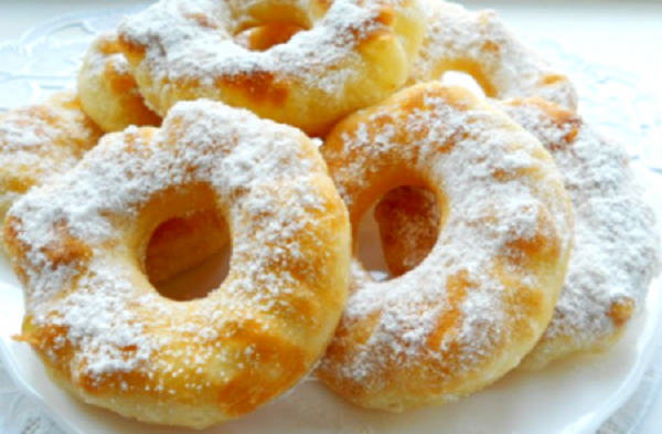 Вырезаем стаканом из теста кружочки. В центре вырезаем меньшее отверстие.