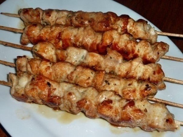 Нанизываем филе курицы на шпажки гармошкой и опускаем в маринад.