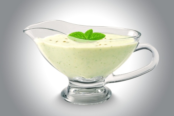 Наливаем в банку с крышкой натуральный йогурт, красный винный уксус, оливковое масло, добавляем по щепотке свежемолотого черного перца и соли.