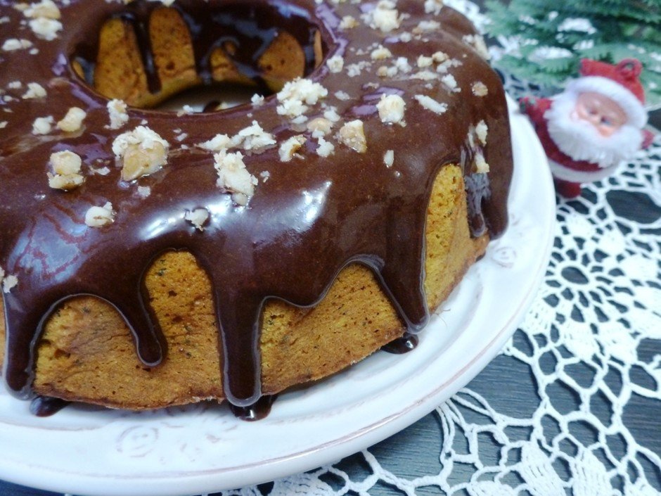 Добавляем в горячую массу сливочное масло (50 г) и хорошо размешиваем. Слегка остужаем и поливаем остывший кекс глазурью.