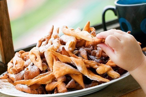 Посыпаем сверху хворост сахарной пудрой, смешанной с ванилином.