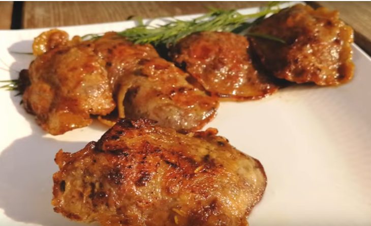 Печень получается в легкой тоненькой пленке. Благодаря этому она остается сочной и имеет интересный просто потрясающий вкус. Печень долго сохраняет сочность и поэтому придется по вкусу каждому. кто ее попробуйте.
